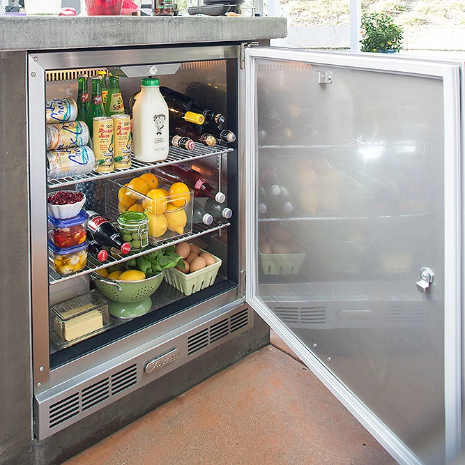 Keep it chilled where you need it with Alfrescos commercially-inspired refrigeration system. The Alfresco one door refrigerator is designed to give you optimal space, consitent temperature, and easily converts into a Keggerator. Features two removable and adjustable stainless steel shelves, a reversable door and digital controls with lighted display.