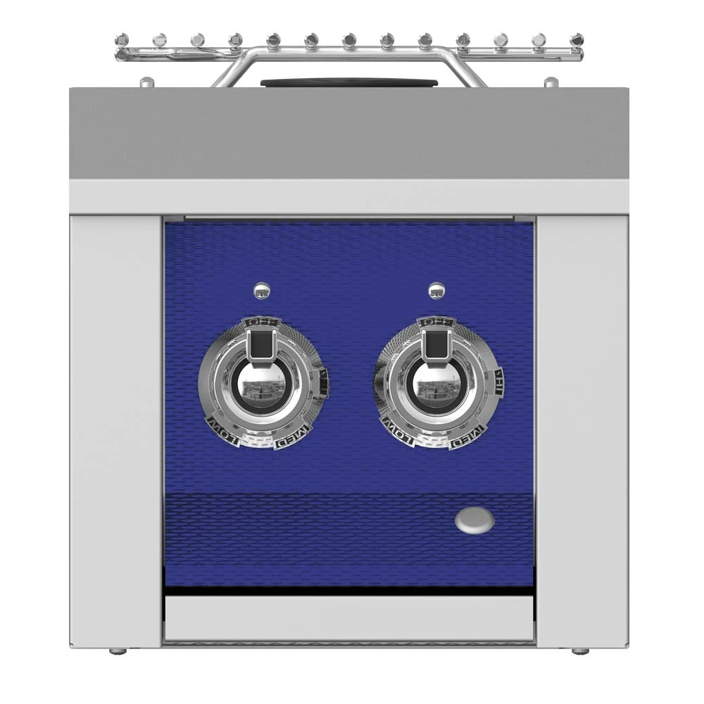 The Aspire by Hestan double side burner can be built into your outdoor kitchen island. It offers a 20,000 BTU sealed burner and a 10,000 BTU sealed burner, so you can handle any sauce, stock or side dish while you grill. With the extra culinary power of the double side burner, you?ll never have to move back into the kitchen. Sealed burner bowl with drain protects from boilovers and spills, and stainless steel cover offers extra protection from the elements. Heavy-duty 304 high-polished stainless steel 5/16-inch rod grate and heavy-gauge welded body construction ensure it will weather the elements and every cookout. Electric spark ignition system with re-ignition capability and LED-illuminated control panel makes it easy to dial in the perfect flame.