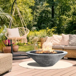 Prism Hardscapes Embarcadero 48-Inch Round 65,000 BTU Natural Gas Fire Pit Bowl – Coastal