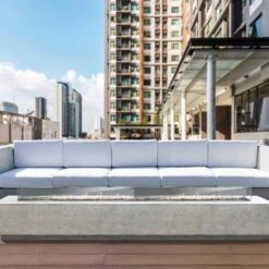 Prism Hardscapes Tavola 110 110-Inch 65,000 BTU Natural Gas Rectangular Fire Pit Table – Pewter