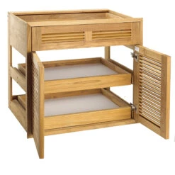 Pacific Teak Millworks Louvered Style 30-Inch Teak Wood Door & Drawer Combo With Roll-Out Trays