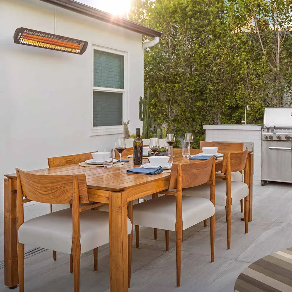 Bromic Heating leads the industry in supplying your outdoor patio with radiant heaters that demonstrate outstanding performance and unbeatable quality. The Bromic Heating (BH0420033) Tungsten Smart-Heat 56-inch electric patio heater stands out against standard patio heaters since it is equipped with a spectral reflector for distributing 6,000 Watts of radiant heat evenly and heat areas up to 160 square feet. The infrared heating element tubes are frosted to reduce the harsh glare, producing a warm, attractive amber glow. The Bromic Heating BH0420033 Tungsten Smart-Heat infrared electric patio heater can be wall or ceiling-mounted (requires recess kit for flush mounting) and wired into smart system controls to fit custom heating preferences. Wall and ceiling mounting options allow you to easily adjust the flow of heat for better, custom directional heating. The heater has a corrosion-resistant, high-temperature coating, and a tamper-proof electrical wiring enclosure to help extend its life and quality. Bromic Heating Tungsten electric heaters are perfect for both commercial and residential installations. This heater uses 240V AC current and must be hard-wired by a licensed electrician. Please consult a licensed electrician to determine suitability for purpose.