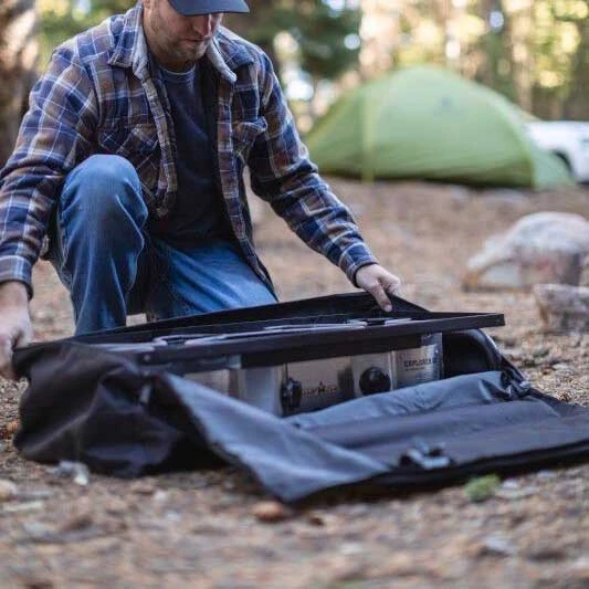 Simplify your camping experience and use the Camp Chef Carry Bag for your 2-burner cooking systems. This durable bag is a necessity for transport and storage. Also doubles as a great gear bag. If you want wheels check out the Roller Carry Bag (RCB60).