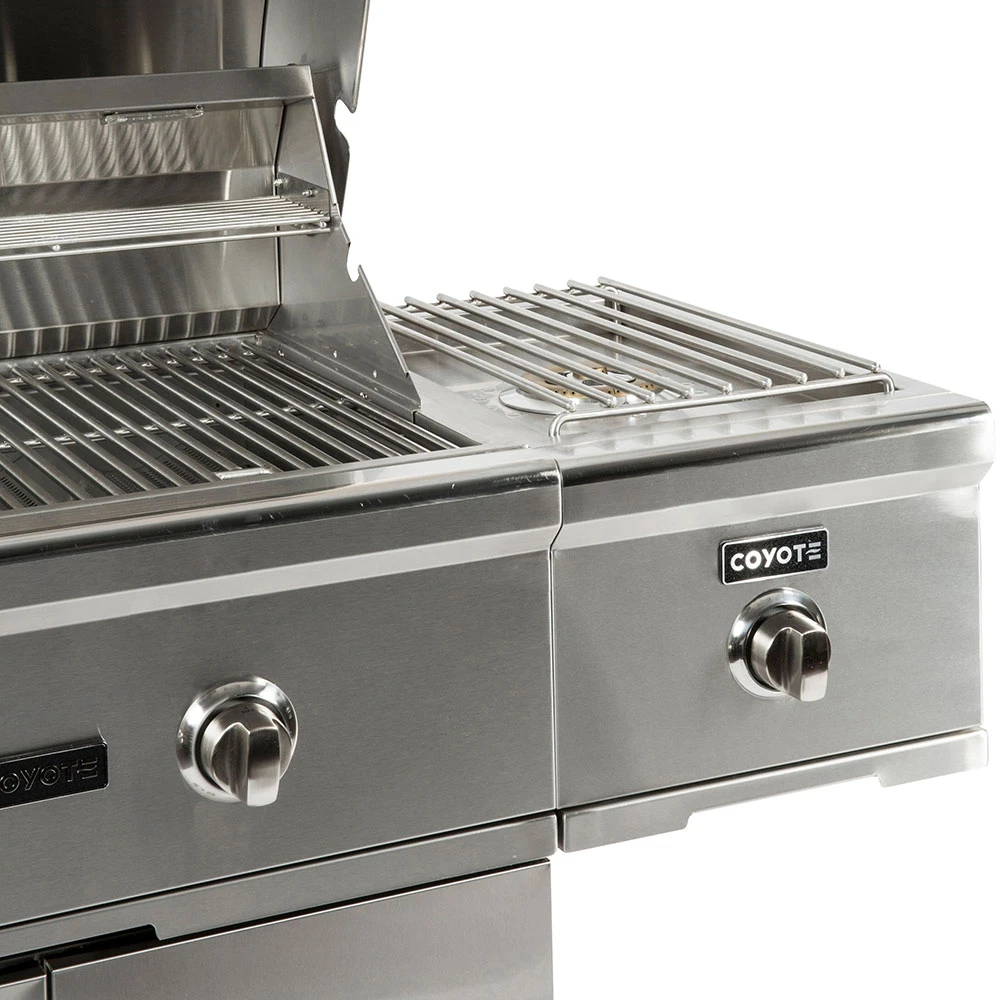 Upgrade your freestanding Coyote Grill and experience the exceptional cooking performance with the Coyote high-performance cart-mounted single side burner (C1CSBNG). The Coyote Grills C1CSBNG natural gas cart-mounted single side burner is equipped with a brass burner that delivers up to 15,000 BTUs for cooking side dishes and sauces with ease. The 18 gauge 304-grade stainless steel exterior combined with the stainless steel cooking grates adds to the heavy-duty and long-lasting construction of the burner. An included stainless steel cover provides additional protection from the outdoor elements. The C1CSBNG natural gas single side burner replaces the right side shelf on any Coyote Grill. Coyote side burners can NOT be filed converted to a different fuel type. It is the customers responsibility to ensure that the correct fuel type is being order. This gas unit can NOT be converted to a different fuel type.