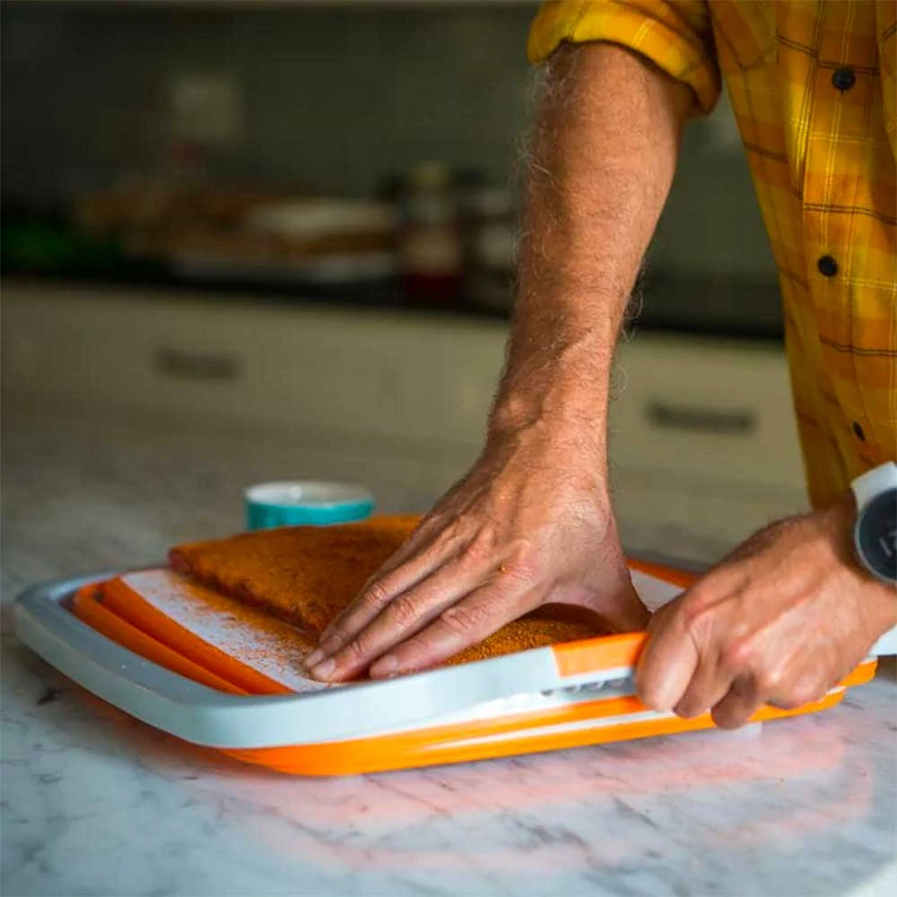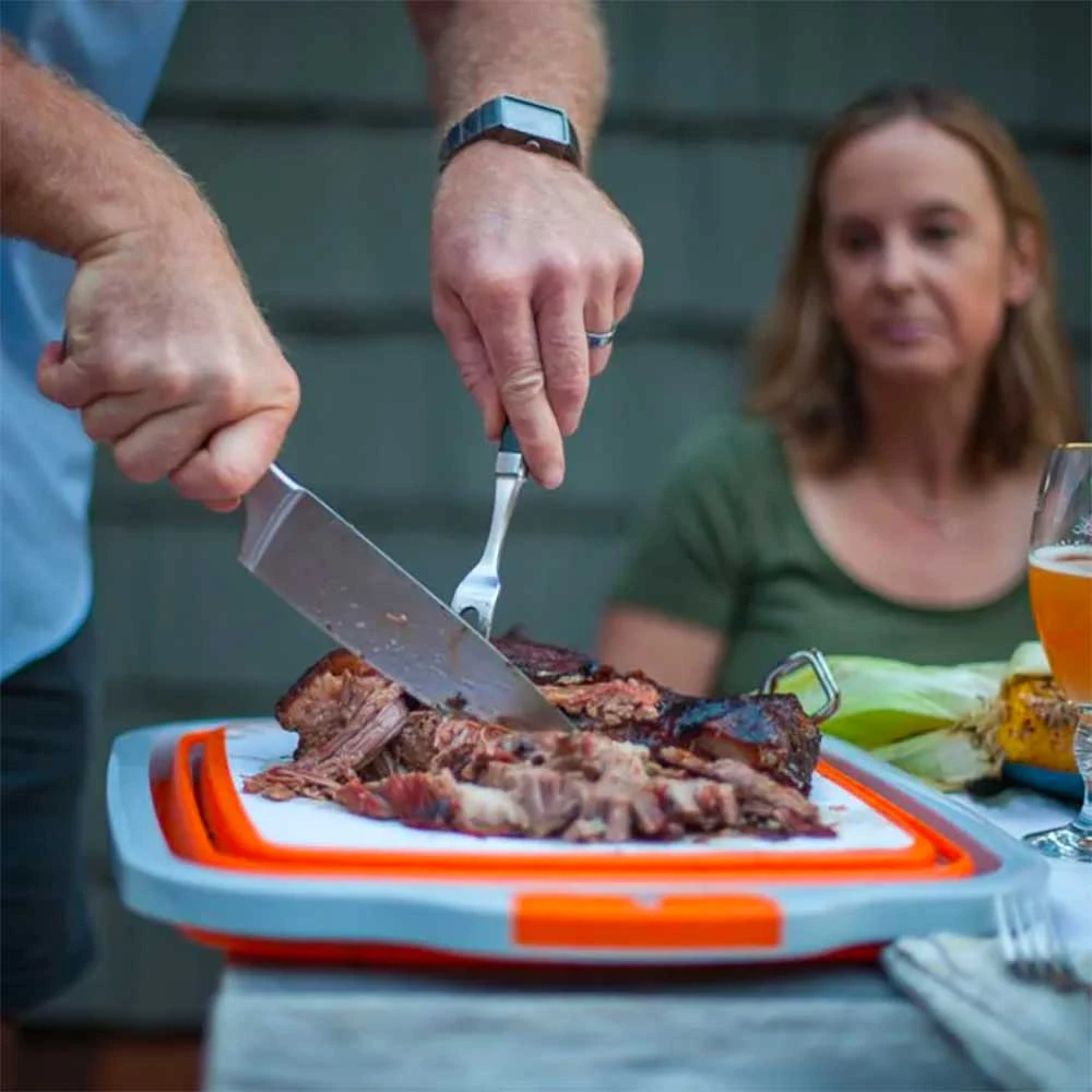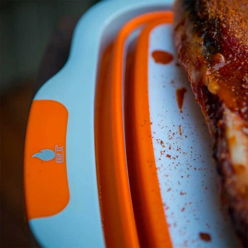 For mess-free prep for your next BBQ, the Drip EZ Jr. Prep Tub has you covered! This orange tub is perfect for applying dry rubs or marinades without spilling. It also collapses so you can use the built-in cutting board after your food comes off the grill. After prep is done, clean it out and fill it with ice to keep your beverages cold. The collapsible design makes the Drip EZ tub compact for space-saving storage. A lid is included for using the tub for temporary food storage.