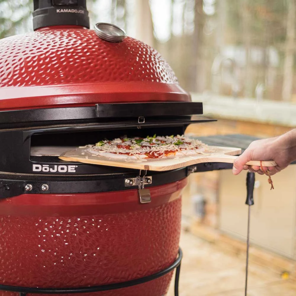 Kamado Joe out succeeds any other kamado-style grill when it comes to providing the essential grilling Kamado accessories to absolutely enhance your backyard grilling experience. One of the latest innovations from Kamado Joe, the durable cast-aluminum Kamado Joe BJ-DJ DoJoe Kamado Pizza Oven System transforms your Kamado Joe Big Joe grill into a best-in-class charcoal pizza oven. Built-in supports to ensure a precise, optimum distance between the Heat Deflectors and Pizza Stone, guaranteeing a perfect crust on the bottom, while the altered airflow traps heat in the dome above the pizza for crispy toppings. This combination of convection airflow above and conduction heat below creates a uniform, even cooking environment surrounding the pizza as it bakes for masterful results. The distinctive wedge shape of the Kamado Joe DoJoe makes maintaining steady temperatures ranging from 200 degrees Fahrenheit to 350 degrees Fahrenheit effortlessly – even over the course of hours. The design also allows grillers to easily remove and insert pizzas without opening the dome – eliminating frustrating temperature fluctuations when cooking multiple pizzas. Fits all Kamado Joe 24-Inch Big Joe grills (Big Joe, Big Joe II, and Big Joe III).