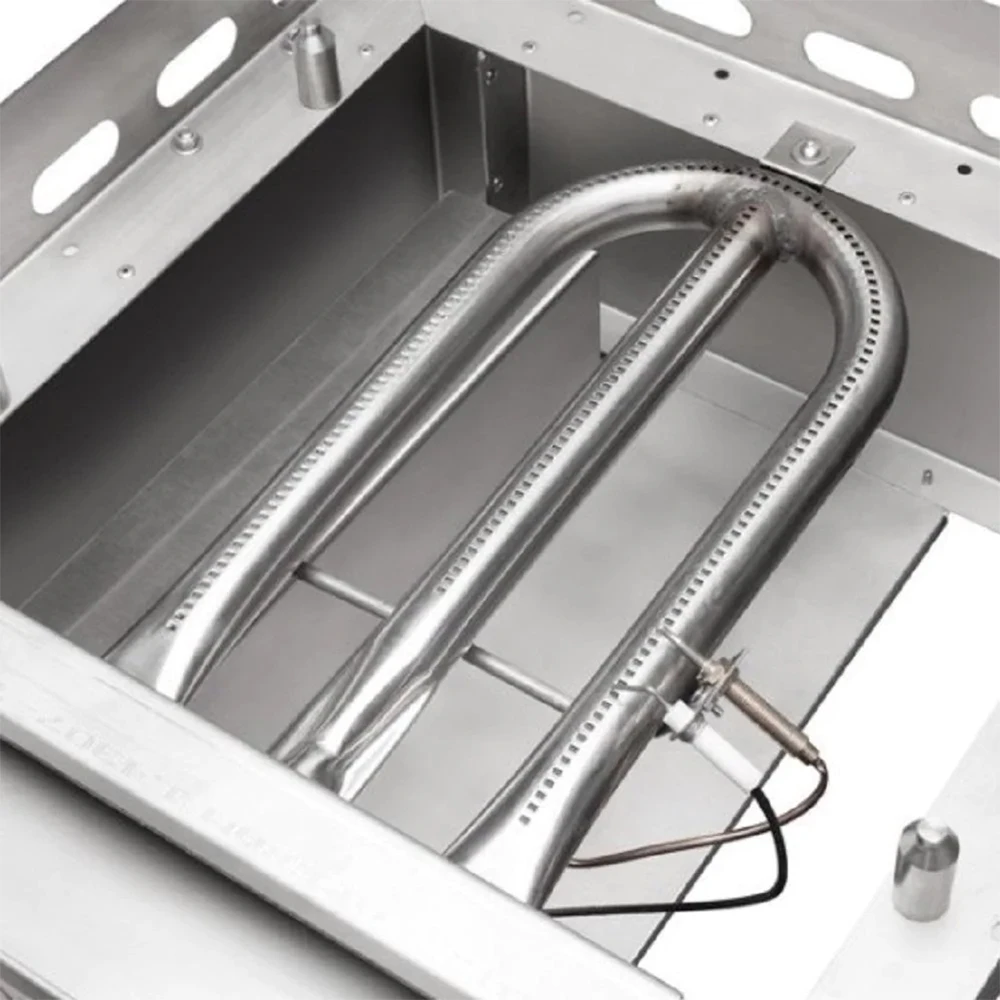 Enjoy the benefits of healthy, French-style griddle cooking with the freestanding Le Griddle propane gas griddle. Featuring a professional-style 304 stainless steel griddle surface and components, the Le Griddle 16-inch propane gas Wee Griddle offers excellent heat distribution thanks to a 1/2-inch thick enameled cast iron sub-plate below the cooking surface. A 304 stainless steel U-shaped burner provides 9,000 BTUs of even heat across the entire 1/8-inch thick stainless steel cooking surface. The easy-to-use push-button electronic ignition system is powered by a single AA battery and features a safety valve and thermocouple to automatically cut off the gas supply in case the flame is extinguished. Ventilation cutouts allow proper airflow to prevent gas buildup and overheating, but the internals and cooking surface are well protected from wind interference. Cleanup is easy with the removable griddle plate and grease collection tray, designed to capture oil and fat for simple disposal. The portable stainless steel cart offers mobility with four locking caster wheels. It features two folding sides shelves for extra prep space and a secure storage area inside the cart with a handy propane tank holder. The Wee Griddle ships are configured for propane gas and easily convert for use with natural gas using the included conversion kit and instructions. This product does not include a propane gas regulator or hose. The stainless steel lid is available separately.