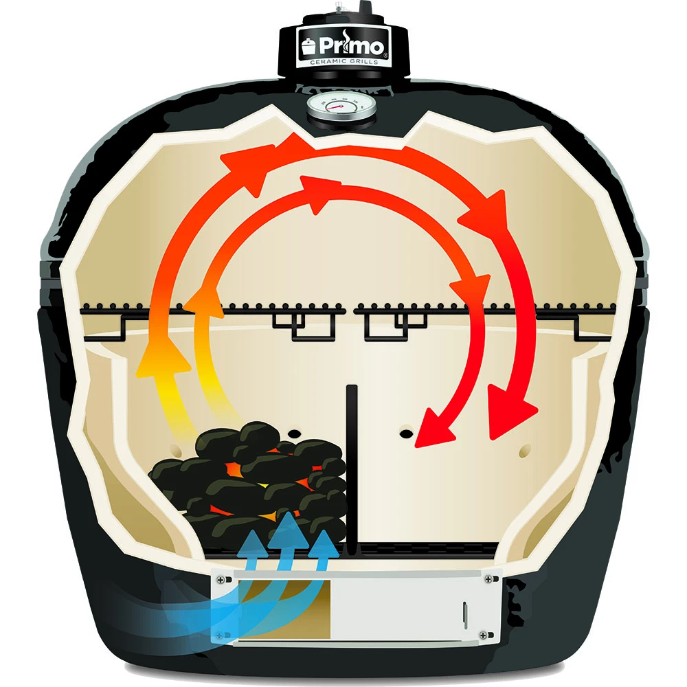 Primo has always been at the pinnacle of innovation and diligently trying to make your Primo Grill, better. This cast iron firebox divider from Primo (314) features a durable cast-iron construction and American made design. The firebox divider for your Oval JR 200 allows you to “split” the firebox of your Primo, in half. Create two distinct cooking zones for simultaneous direct and indirect cooking. Also, conserve the amount of natural lump charcoal used for smaller cooking sessions. Increases efficiency and cut down on charcoal use, saving you money, with the Primo cast iron firebox divider for Primo Oval JR (314) grills.