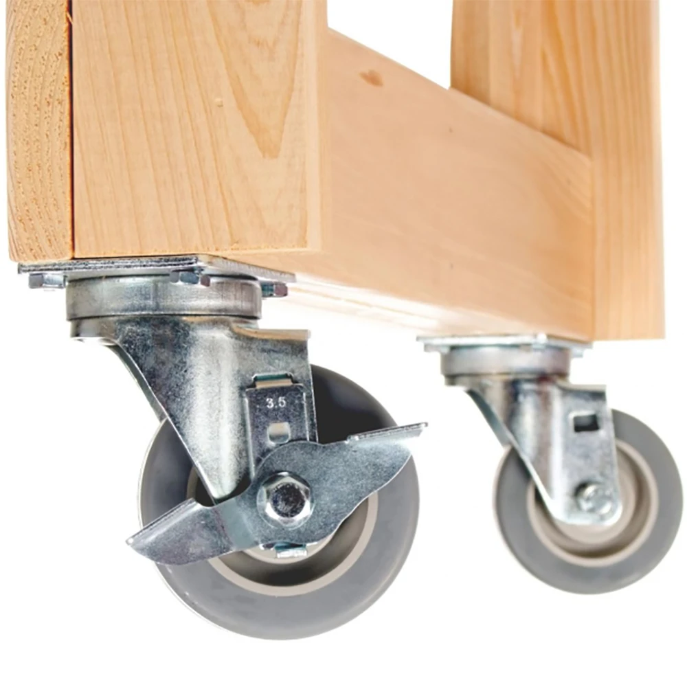 This handmade cypress wood kamado table for the Oval XL (600) features a curved front which makes it easy for you to get in close to the grill and feel surround by your cooking. At 61 inches wide, the table provides plenty of workspace for prepping food and room to store ingredients and grilling tools. The cypress wood is naturally resistant to insects, decay and outdoor conditions. The table comes unfinished and we recommend sealing or staining for lasting durability. Four revolving and lockable caster wheels roll smoothly on any patio surface and lock in place when you are ready to grill. Ceramic feet are included with any table purchase and need to be used when the grill sits on a combustible surface. When it comes to showing off your new Primo Oval XL, be sure to place it on this beautiful curved cypress kamado table (600).