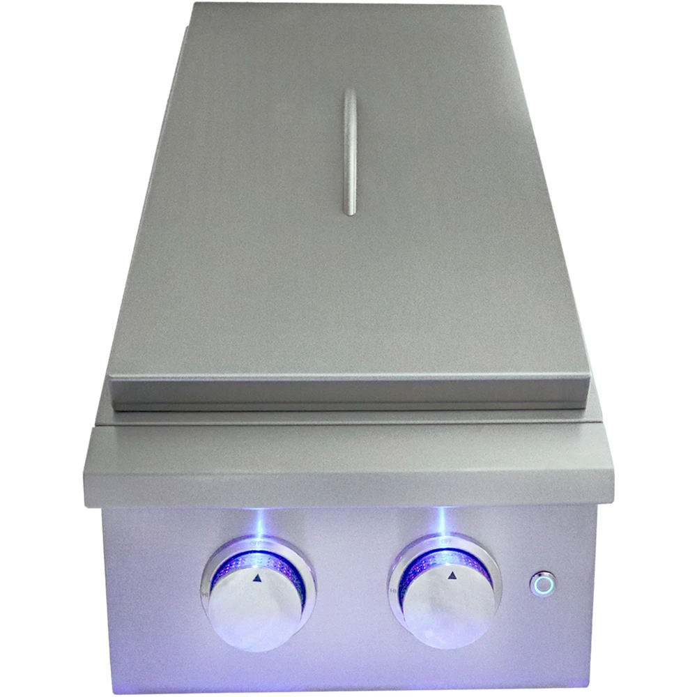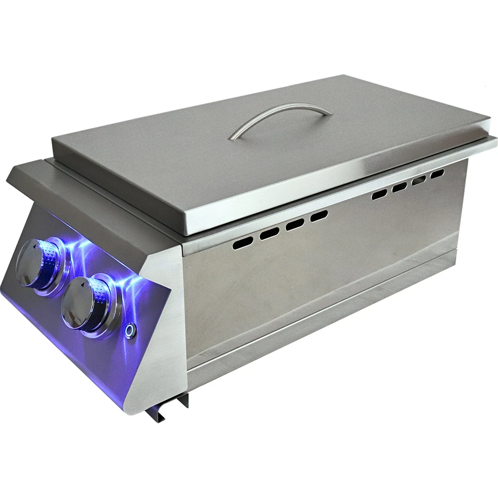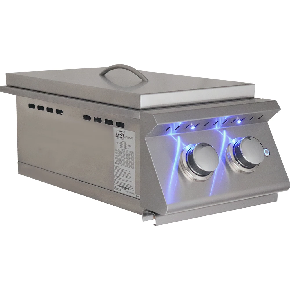 RCS Premier Series 24,000 BTU Built-In Propane Gas Double Side Burner With LED Lighting & Stainless Steel Lid