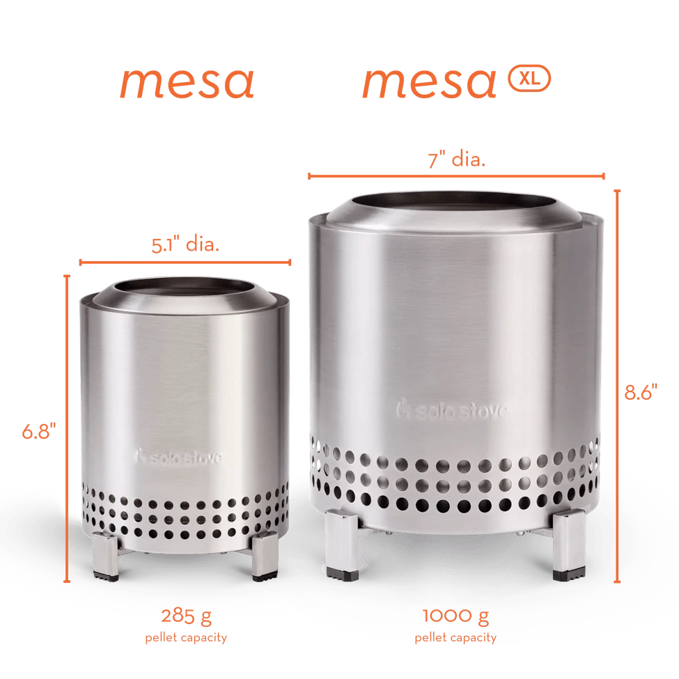 Bring warmth to the table. Mesa XL is the tabletop fire pit made to elevate the aesthetic of your space. With Dual Fuel capability (pellets and wood) and Signature 360-degree Airflow, anyone can easily ignite and enjoy a smokeless fire. Includes Mesa XL tabletop fire pit, stand, pellet adapter and nylon carry bag. The Solo Stove Mesa XL is the perfect way to bring the feeling of the great outdoors right into your own backyard!