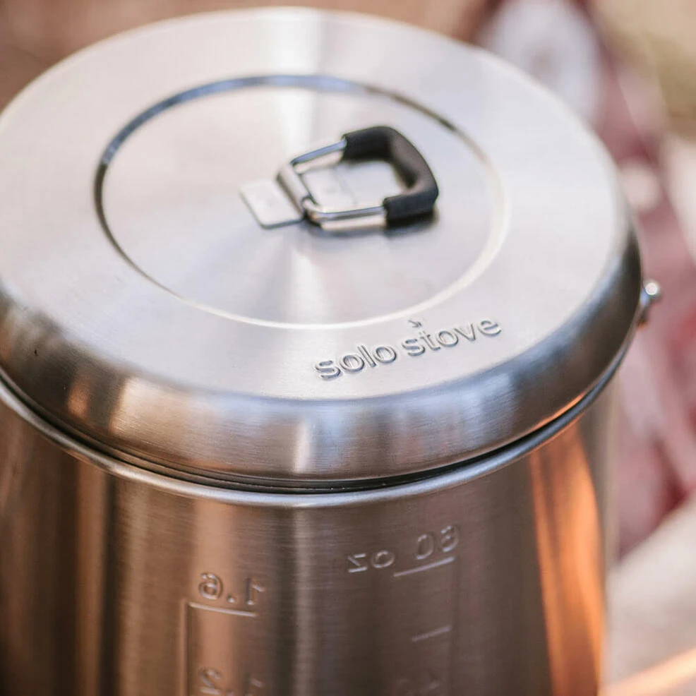 The essential cooking companion for Solo Stove Titan, craft tasty soups, stews, and hot drinks without taking up precious room in your pack. Pot 1800 is made with durable 304 stainless steel, just like your Titan camp stove. Cook up a quick, hot meal for two and nest Titan inside when it?s time to get moving. It features a lockable silicone-coated lift tab, bail handle to hang from Tripod, pour spout, double fold-out handles, and volume markings in ounces and milliliters. Pot 1800 holds up to 1800 mL (61 fluid ounces). Every Solo Stove product is backed by a lifetime warranty.