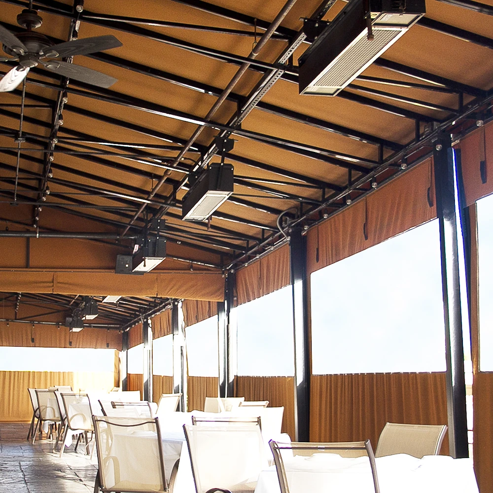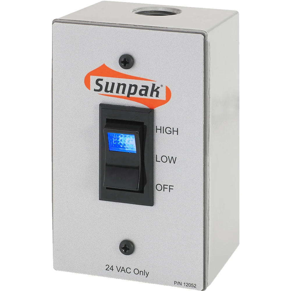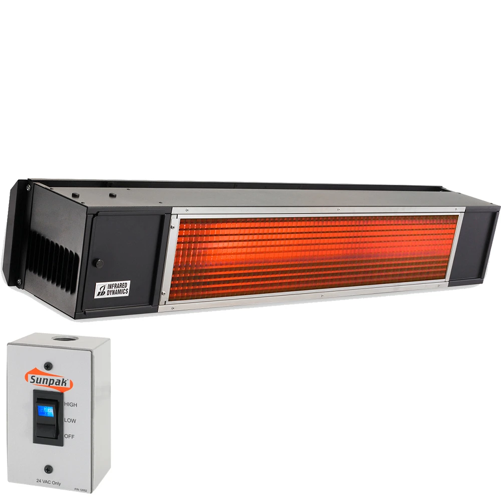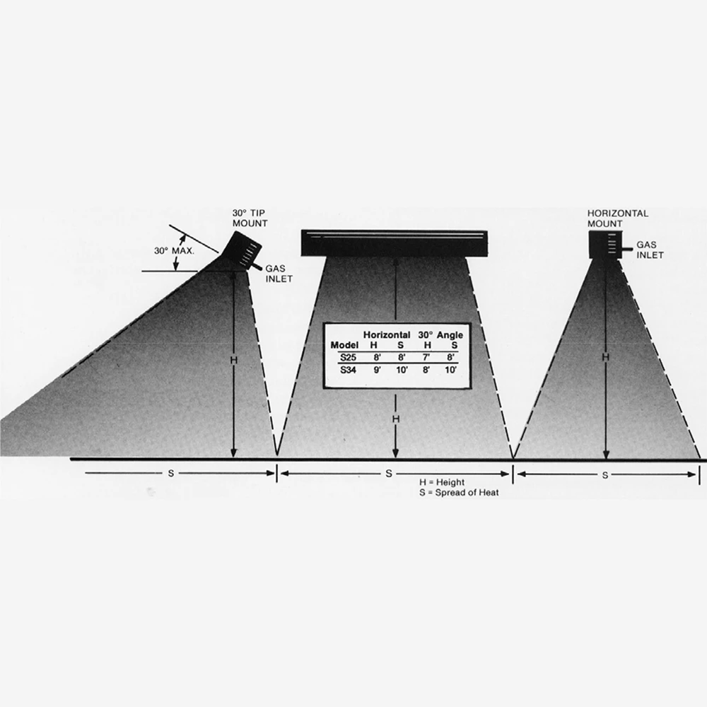 Sunpak patio heaters extend your time outdoors and keep your dining and entertaining patio areas comfortable and warm, the true artisan way! This SunPak commercial two-stage (S34 B TSH-NAT) ceiling or wall mounted gas patio heater is simple to use and efficiently heats an approximate 12-foot by 12-foot area using infrared energy and a ceramic burner, which heats objects and people, not the air. The commercial quality high-temp black powder-coated patio heater has an electronic ignition with automatic relight and flame sensor feature. It can be set on low (25,000 BTUs) or on high (34,000 BTUs) using the included two-position wireless duplex wall switch. Ideal for wind protected areas up to 10 mph, the heater can be mounted at any angle between 0 and 30 degrees with the included mounting hardware. All Sunpak heaters are CSA design certified to rigid ANSI standards and include a 120 volt-to-24 volt transformer.