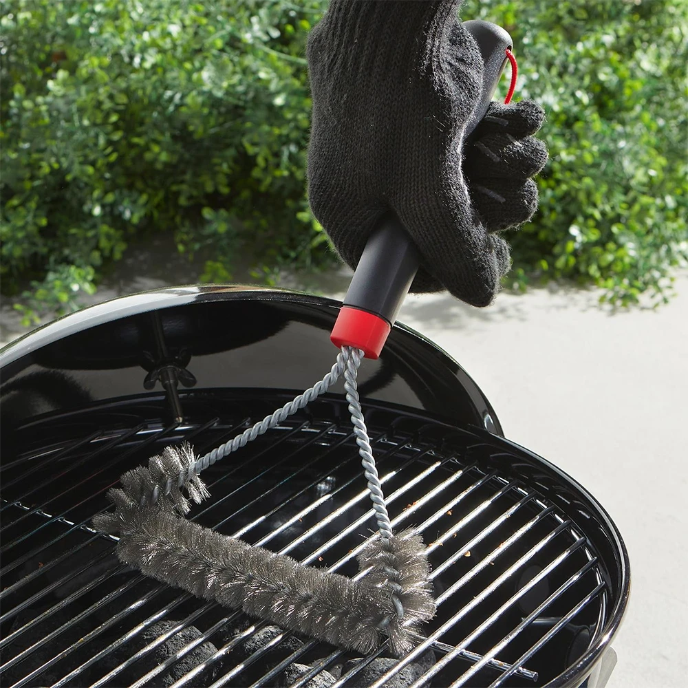 This three-sided grill brush is made to remove grease and debris from cooking grates of all sizes. The handle design provides a secure grip when brushing off stuck-on food or cleaning tight spaces. Use this grill brush to clean your grates before each use so that your grill lasts longer and your next meal is as delicious as the one before.