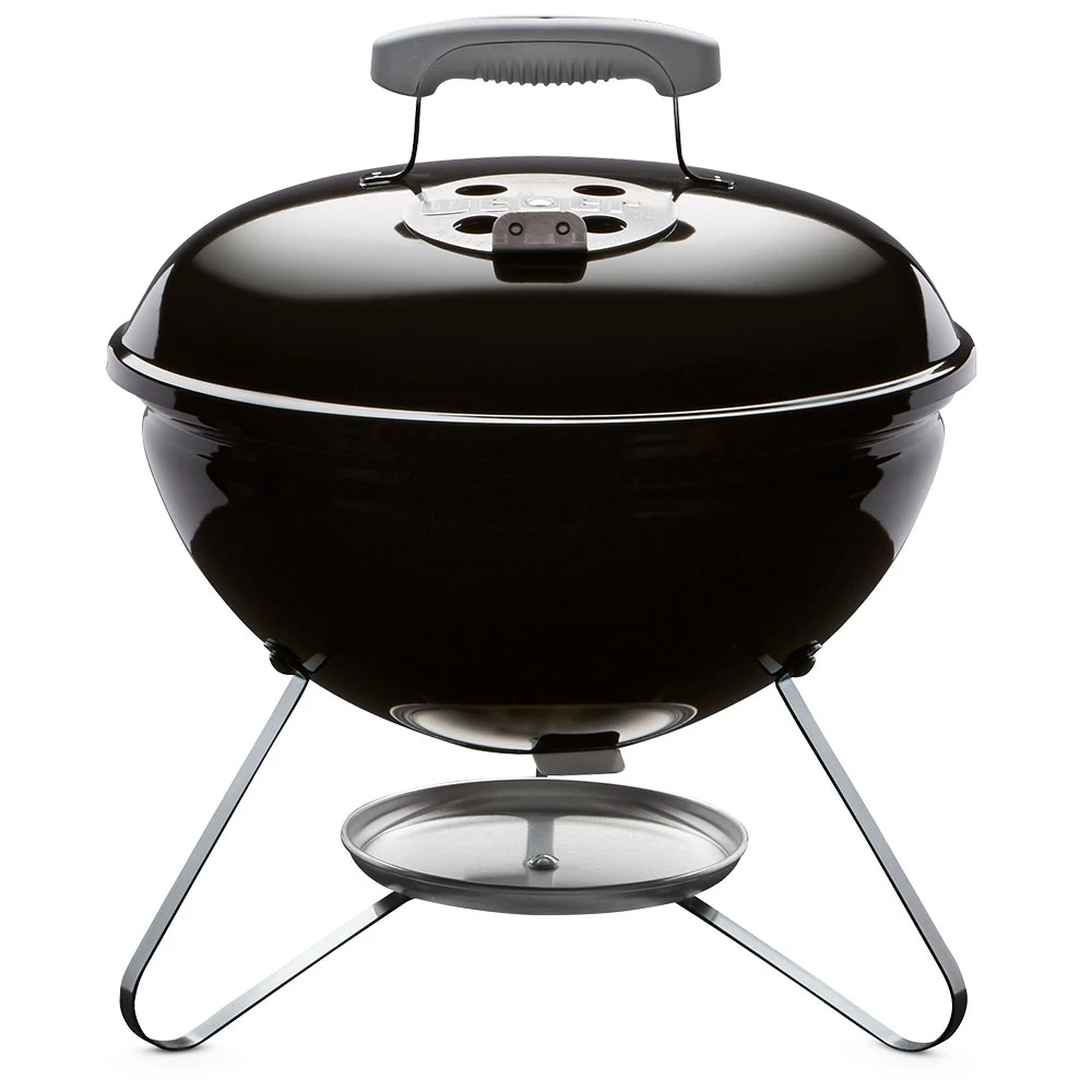 Big fun comes in small sizes! A miniature take on the classic Weber kettle, the Weber 10020 Smokey Joe charcoal portable BBQ grill helps you grill in style even in tight spaces like apartment balconies and its take-along size makes it perfect for picnics, camping, or tailgating. Made of premium-grade U. S. Steel, the bowl and lid of this portable Weber kettle grill are coated with a black porcelain enamel inside and out that is baked on, fusing the finish to the steel to prevent rusting and peeling through years of use. The adjustable, no-rust aluminum top vent provides the proper airflow needed for perfect grilling and helps you to control the temperature across the 14 1/2-inch diameter cooking area. Weber Smokey Joe grills also feature heavy-duty, plated steel cooking grates, a no-rust aluminum ash catcher, and a glass-reinforced nylon handle that will withstand the elements for the life of the grill. With the Smokey Joe Silver, you will love its compact size and stylish looks every time you fire it up!